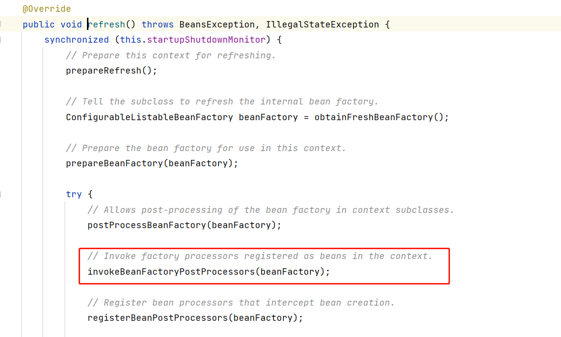 源码中执行了创建 bean 示例、填充 bean 和 初始化 bean 的过程,其中执行方法对应了初始化 bean
